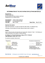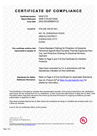· Fabric complies to ASTM F1506 for Arc Flash and NFPA 2112 (ASTM F1930) for Flash Fire. Minimum Arc Flash rating (ATPV) is 11 Cal / cm2 and complies with CAT 2 rating.· Garment is NFPA 2112 / CAT 2 compliant and UL CERTIFIED.